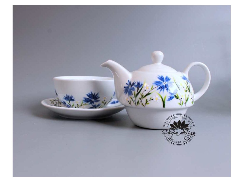 Tato čajová sada je vyrobena z porcelánu a ručně malovaná. Konvice má obsah 0,5 L a šálek má obsah 0,3 L. Sada je doplněná podšálkem. Dá se běžně používat a umývat běžným způsobem. Nedoporučujeme umývat v myčce na nádobí.