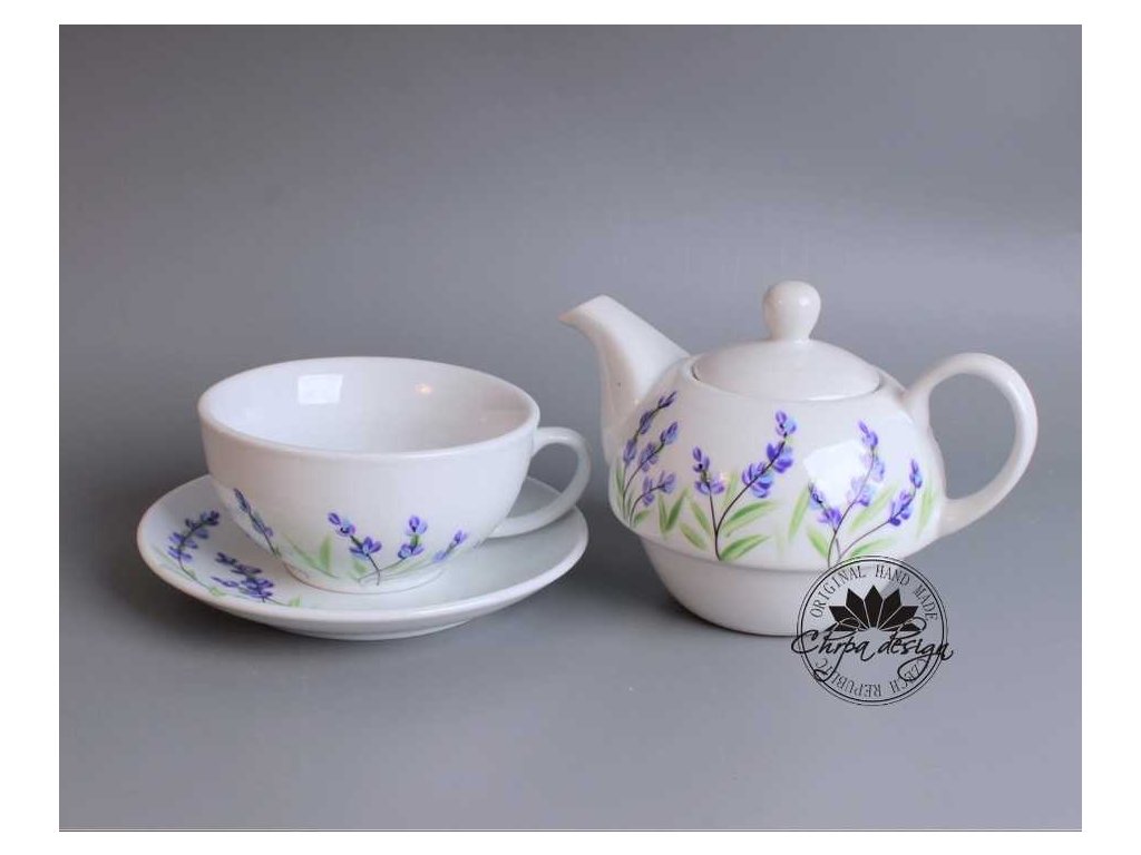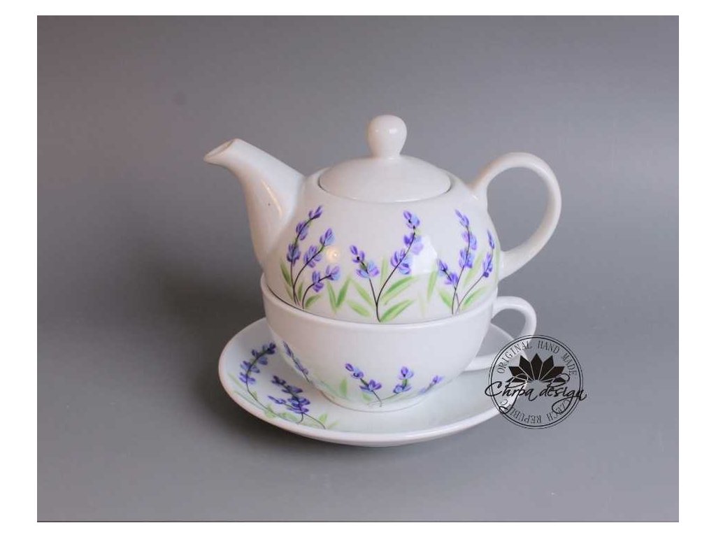 Tato čajová sada je vyrobena z porcelánu a ručně malovaná. Konvice má obsah 0,5 L a šálek má obsah 0,3 L. Sada je doplněná podšálkem. Dá se běžně používat a umývat běžným způsobem. Nedoporučujeme umývat v myčce na nádobí.