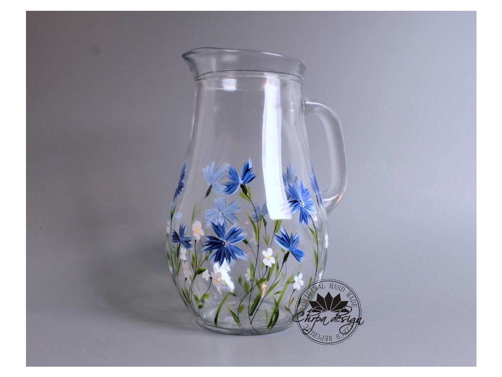 Skleněný džbán je ručně malovaný. Vhodný především na studené nápoje. Lze doplnit také ručně malovanými sklenicemi ve stejném vzoru. Dá se běžně používat a mýt běžným způsobem. Nevhodné do myčky na nádobí. Obsah džbánu je 1,8 L