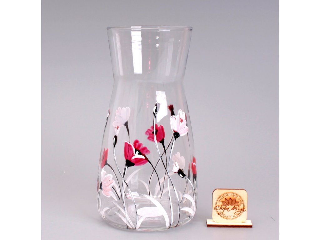 Karafa má obsah 1 litr. Je ručně malovaná a dá se použít jako karafa na vodu spolu se stejně malovanými longovkami. Můžete také použít jako vázu. Krásný designový doplněk. Nedoporučujeme mytí v myčce na nádobí.