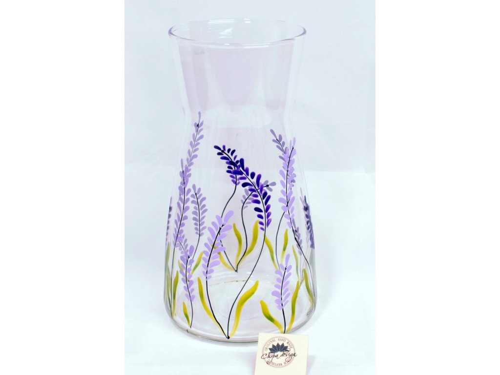 Karafa má obsah 1 litr. Je ručně malovaná a dá se použít jako karafa na vodu spolu se stejně malovanými longovkami. Můžete také použít jako vázu. Krásný designový doplněk. Nedoporučujeme  mytí v myčce na nádobí.