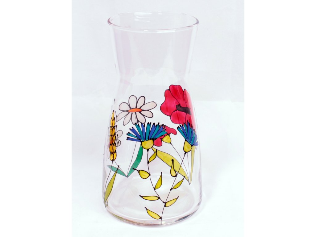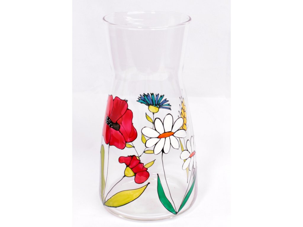 Karafa má obsah 1 litr. Je ručně malovaná a dá se použít jako karafa na vodu spolu se stejně malovanými longovkami. Můžete také použít jako vázu. Krásný designový doplněk. Nedoporučujeme mytí v myčce na nádobí.