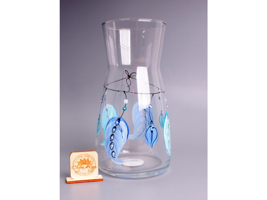 Karafa má obsah 1 litr. Je ručně malovaná a dá se použít jako karafa na vodu spolu se stejně malovanými longovkami. Můžete také použít jako vázu. Krásný designový doplněk. Nedoporučujeme  mytí v myčce na nádobí.
