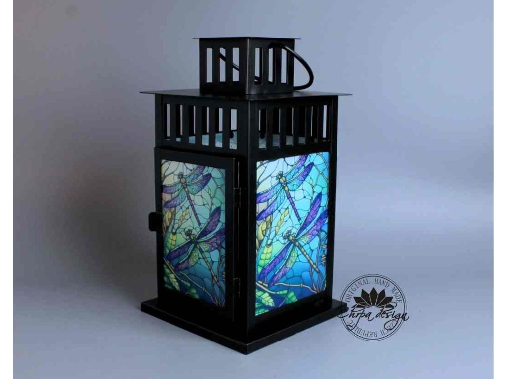Okouzlující hra světla s barvami našeho designového potisku a la vitráž, v malé lucerničce.
