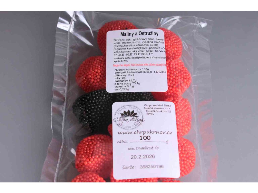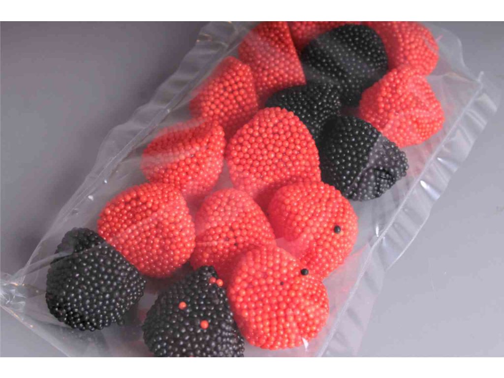 - Složení: cukr, glukózový sirup, škrob, voda, maltrodextrin, kyselina mléčná, (E270), kyselina citrónová (E330), regulátor kyselosti (E325), příchutě, včelí vosk, karnaubský vosk, šelak, barviva E102, E110, E129, E133, E171.