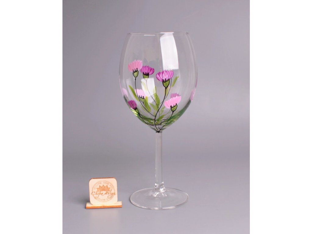 Maxi sklenička na víno. Sklenička je ručně malovaná. Dá se běžně používat a umývat běžným způsobem. Nedoporučujeme umývat v myčce na nádobí. Obsah 0,6 L. Dodáváme v dárkové krabičce.