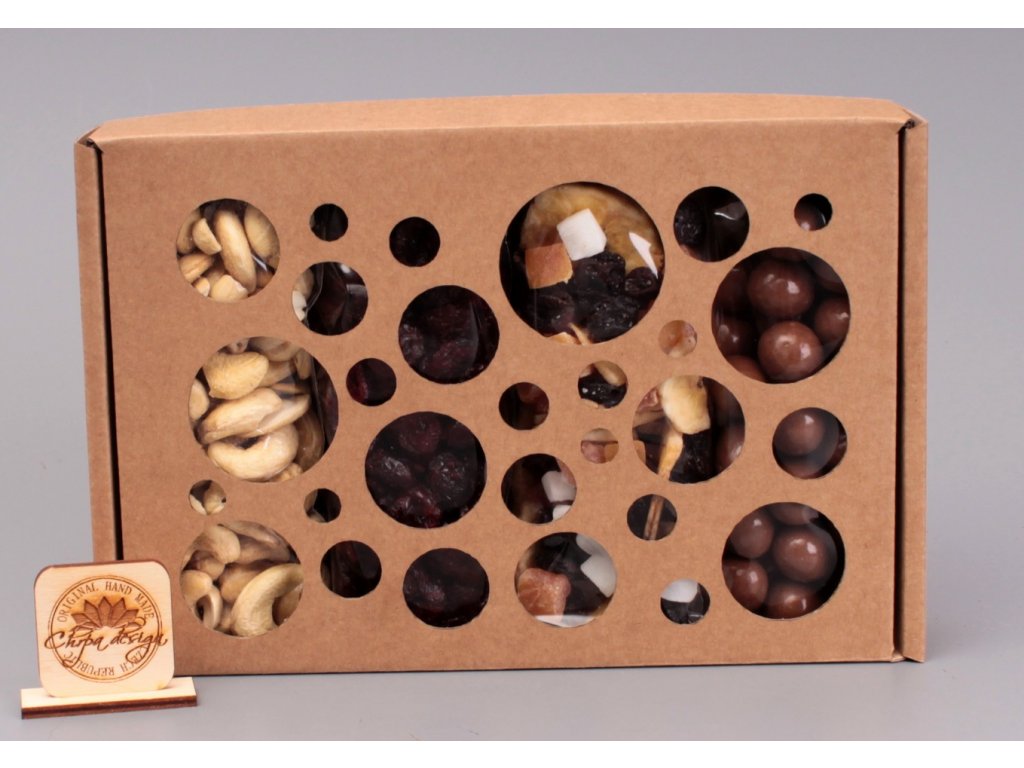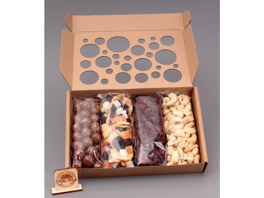 Lískové oříšky v mléčné čokoládě, exotická směs, brusinky, kešu.