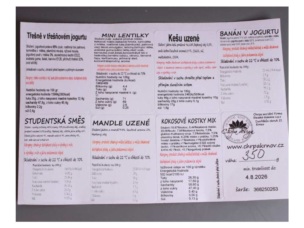 Hmotnost 350 g. Složení naleznete ve fotogalerii.