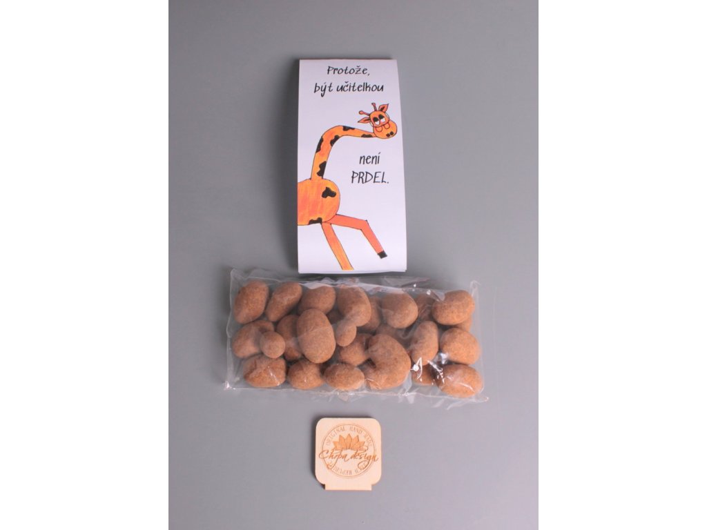 Hledáte nějakou dobrotu ke konci školního roku? Tak pro Vás jsme připravili naše nové mlsné pytlíky - přebal vidíte na fotce a vybrat si můžete z 6 druhů oříšků nebo suš. ovoce (na výběr máme - kešu natural, mandle v bílé čokoládě s malinami, mandle v bílé čokoládě a kokosu, uzené mandle, višně v hořké čokoládě a mandle v mléčné čokoládě se skořicí).