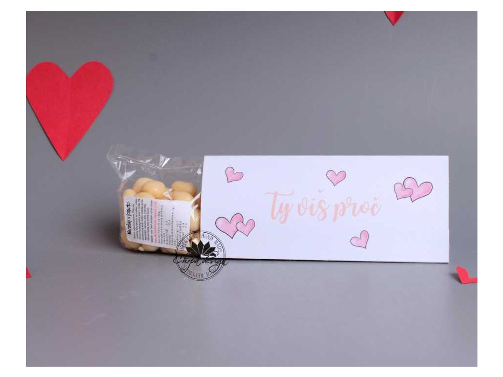 Hledáte nějakou dobrotu pro své milované? Tak pro Vás jsme připravili naše nové mlsné pytlíky - přebal vidíte na fotce a vybrat si můžete z 5 druhů oříšků nebo suš. ovoce (na výběr máme - kešu natural, mandle v bílé čokoládě s malinami, mandle v bílé čokoládě a kokosu, uzené mandle, kokosové kostky).