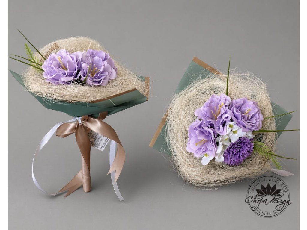 Mýdlové jsou pouze okvětní lístky, zbytek pugetu jsou dekorace.