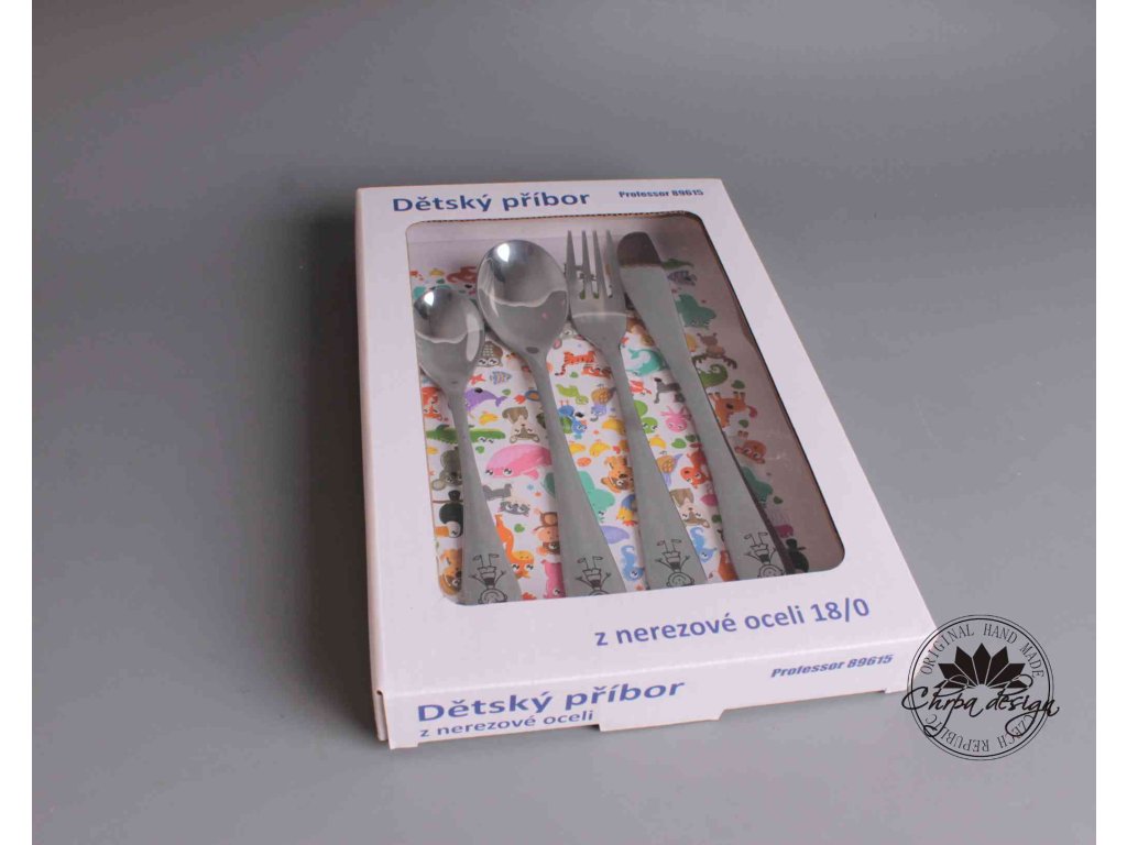 Příbor je přizpůsoben velikostí i tvarem dětským ručkám - lehký, bezpečný a příjemný na používání. Vhodný i do myčky nádobí.