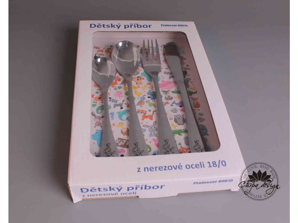 Příbor je přizpůsoben velikostí i tvarem dětským ručkám - lehký, bezpečný a příjemný na používání. Vhodný i do myčky nádobí.