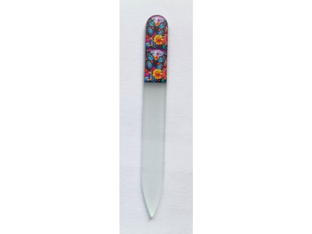 Skleněný pilník na nehty, oboustranný. Obrázek je také z obou stran pilníku.