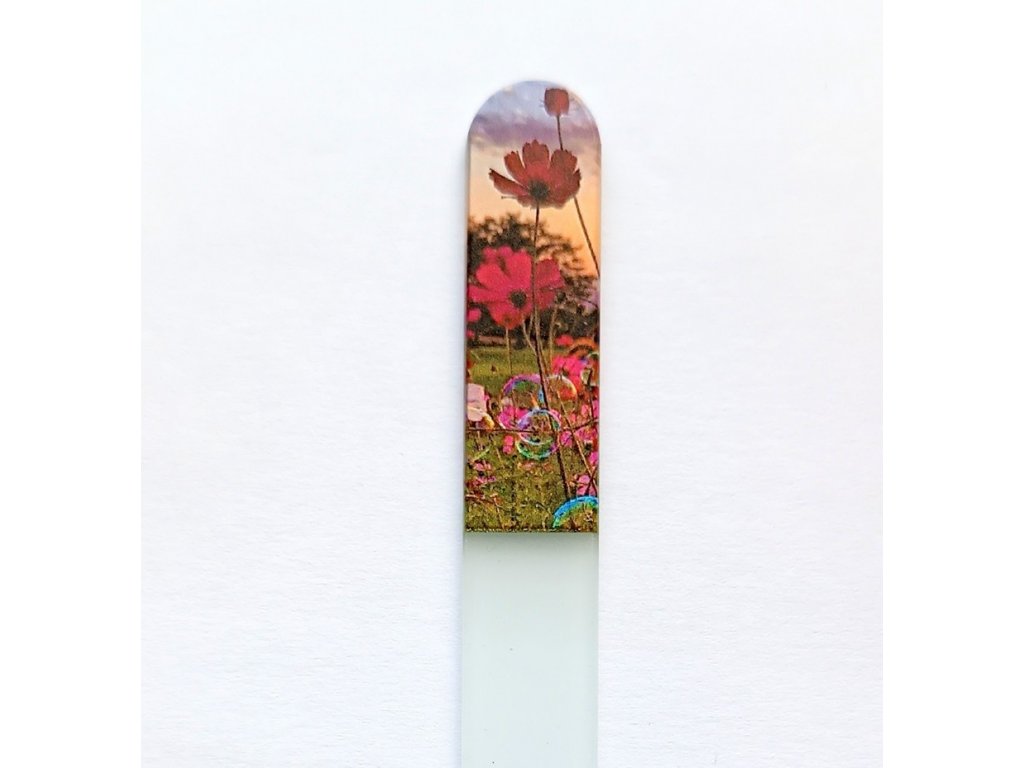 Skleněný pilník na nehty, oboustranný. Obrázek je také z obou stran pilníku.