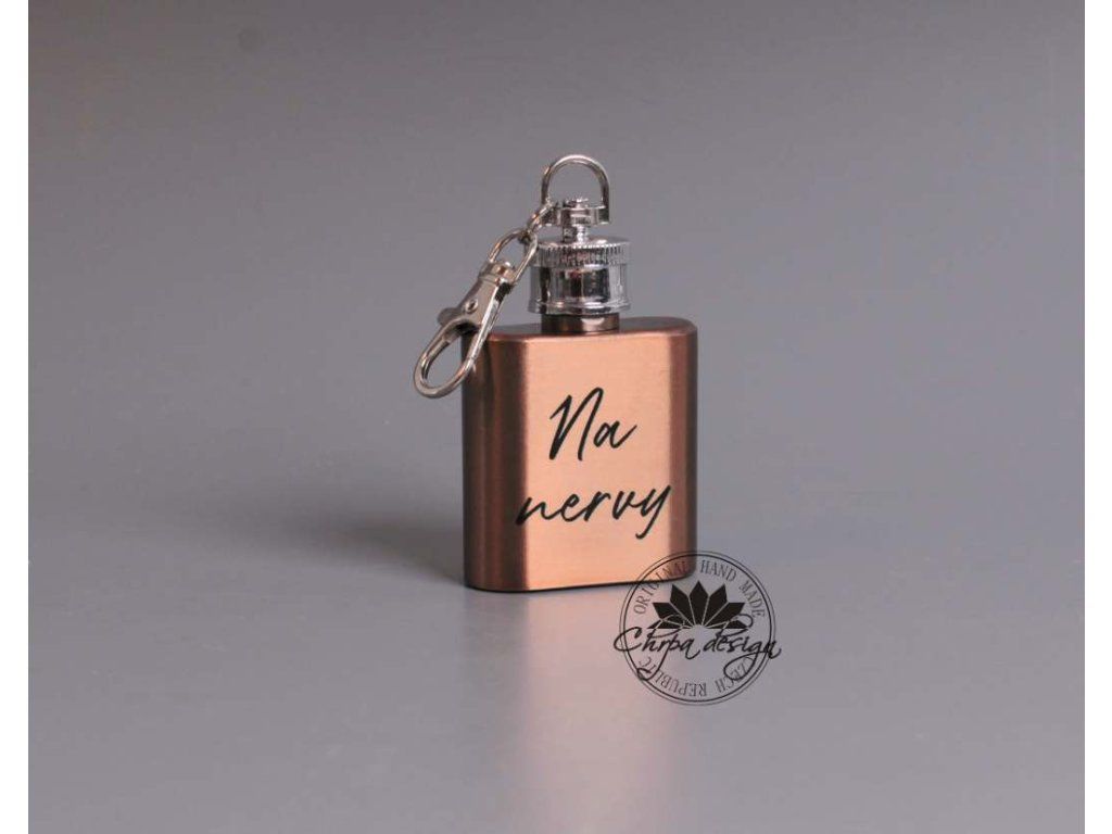 Kovová placatečka ve formě přívěšku na klíče s originálním nápisem - UV potisk.