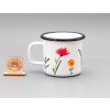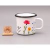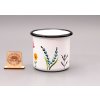 Plechový hrnek je ručně malovaný.