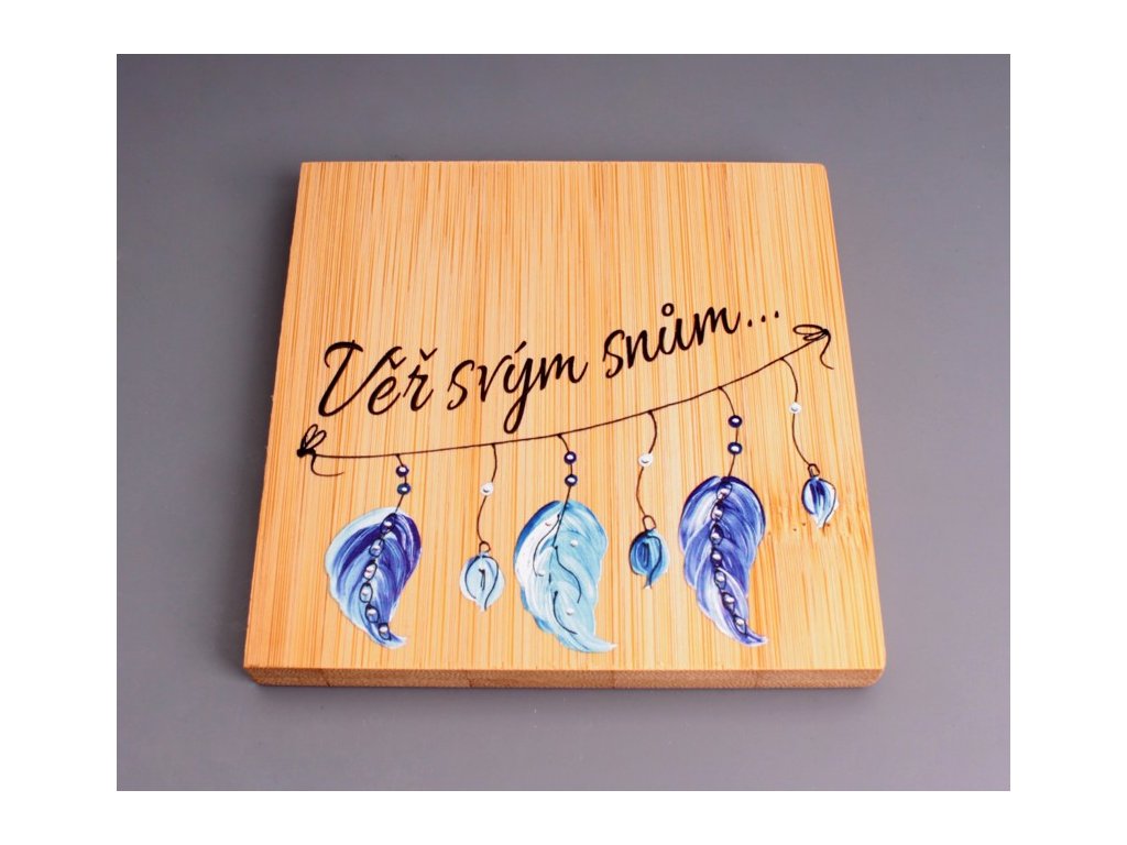 Podtácek dřevo - věř svým snům - modrá