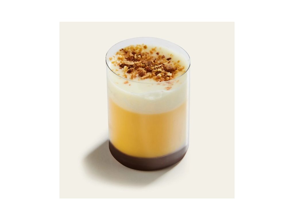 Speciální pralinka ve tvaru válečku obalená v průhledném snímatelném plastu s bílým cheescake krémem s citronovou příchutí.
