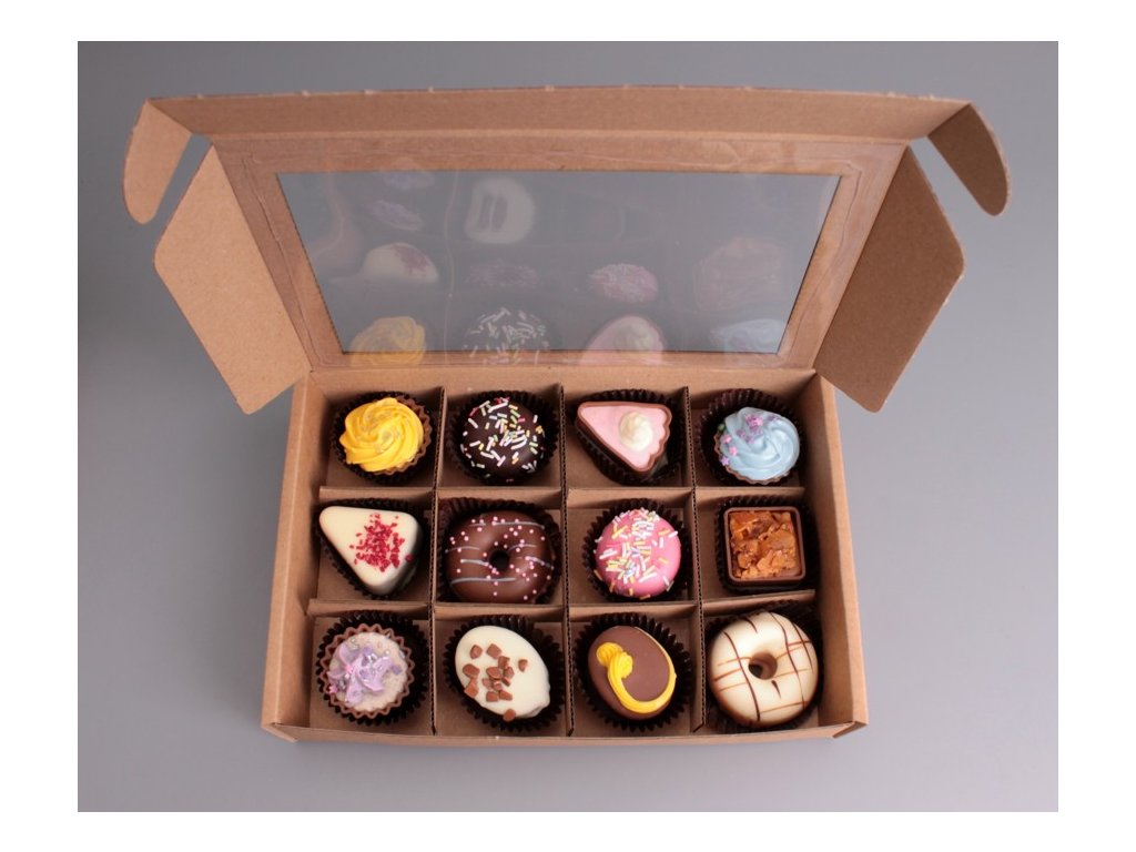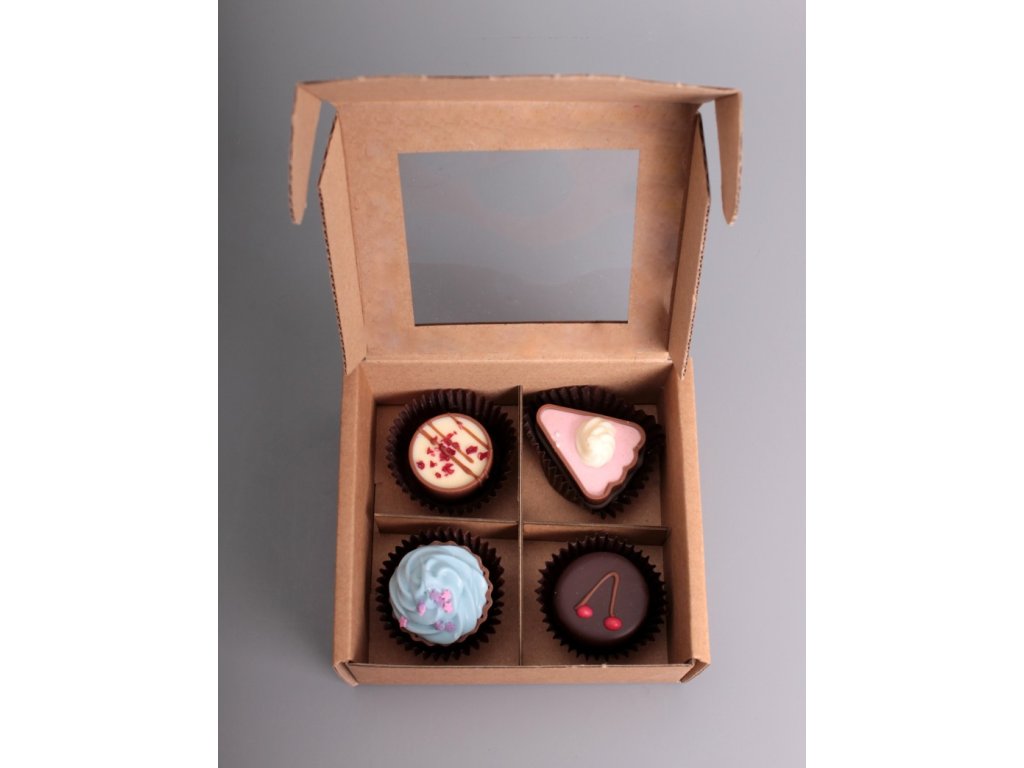 Ke 4 nebo 12ks pralinek si můžete zakoupit dárkovou krabičku za zvýhodněnou cenu. Najdete ji v kategorii pralinky. Foto plné krabičky je pouze ilustrativní - zakupte si dárkovou krabičku a poté si vyberte, na jaké pralinky máte chuť a které si do krabičky zakoupíte.