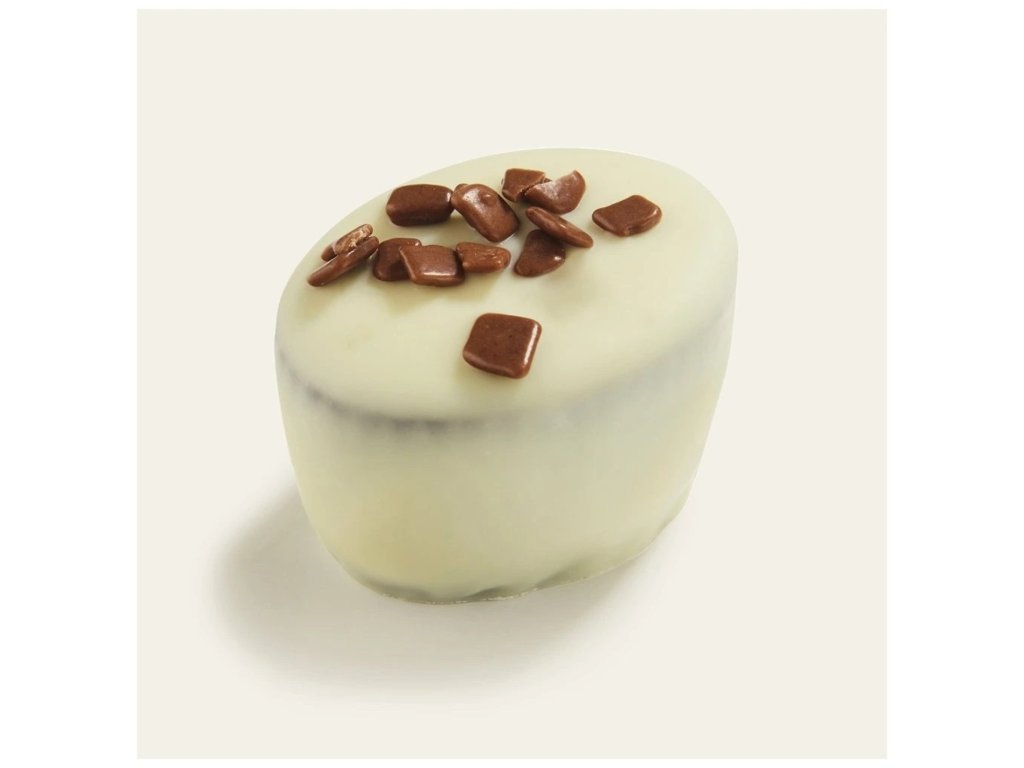 Tato pralinka má příchuť: Marcipán s příchutí Marc de Champagne v bílé čokoládě