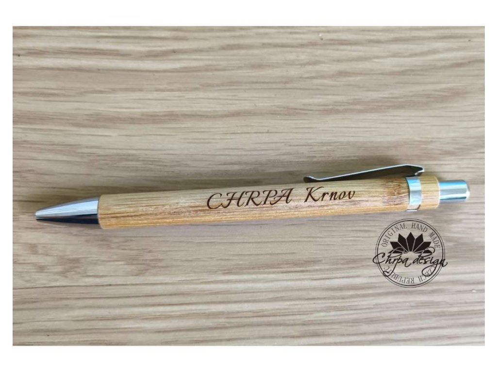 Dřevěné pero s laserem gravírovaným textem.