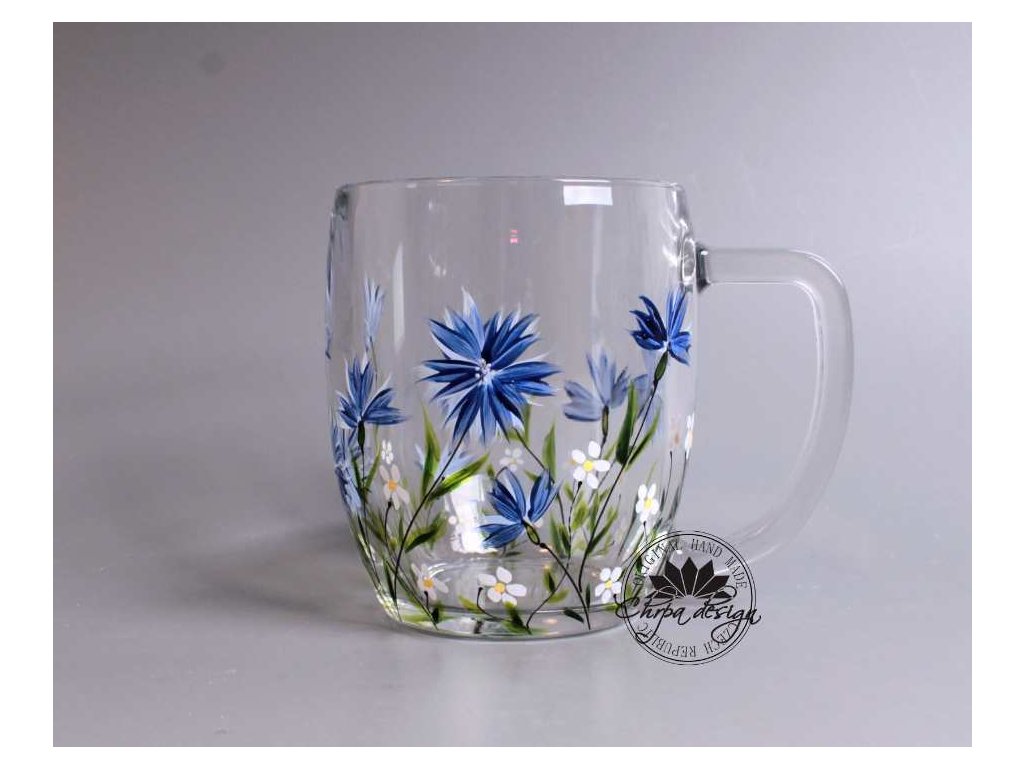 Skleněný ručně malovaný půllitr o obsahu 0,5 L. Půllitrse dá používat a mýt běžným způsobem. Nedoporučujeme mytí v myčce.