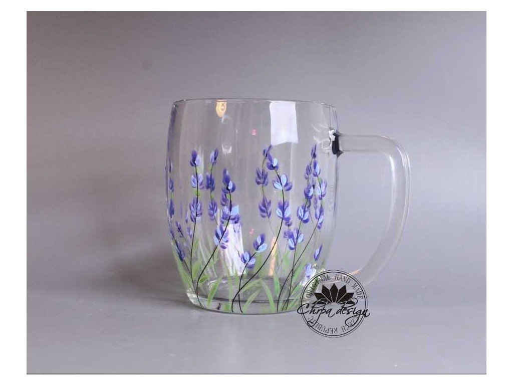 Skleněný ručně malovaný půllitr o obsahu 0,5 L. Půllitrse dá používat a mýt běžným způsobem. Nedoporučujeme mytí v myčce.