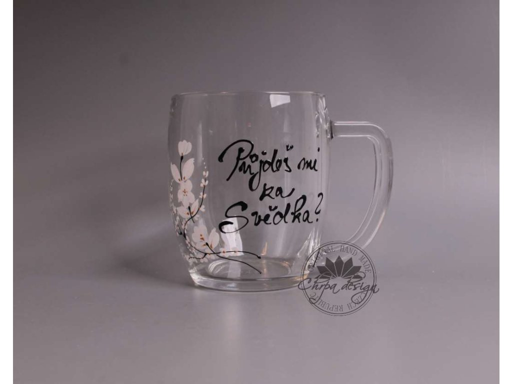 Skleněný ručně malovaný půllitr o obsahu 0,5 L. Půllitrse dá používat a mýt běžným způsobem. Nedoporučujeme mytí v myčce.