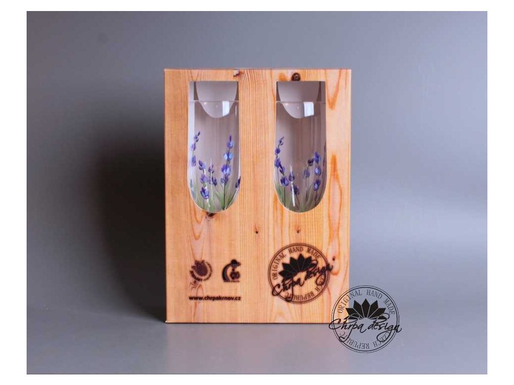 Sada dvou sklenic v dárkové krabičce. Sklenice jsou ručně malované. Dá se běžně používat a umývat běžným způsobem. Nedoporučujeme umývat v myčce na nádobí. Sklenice na šampus v dárkovém balení. Obsah sklenic 0,2 L.