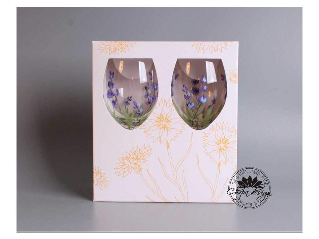Sada dvou sklenic v dárkové krabičce. Sklenice jsou ručně malované.  Dá se běžně používat a umývat běžným způsobem. Nedoporučujeme umývat v myčce na nádobí. Obsah sklenic 0,28 L.