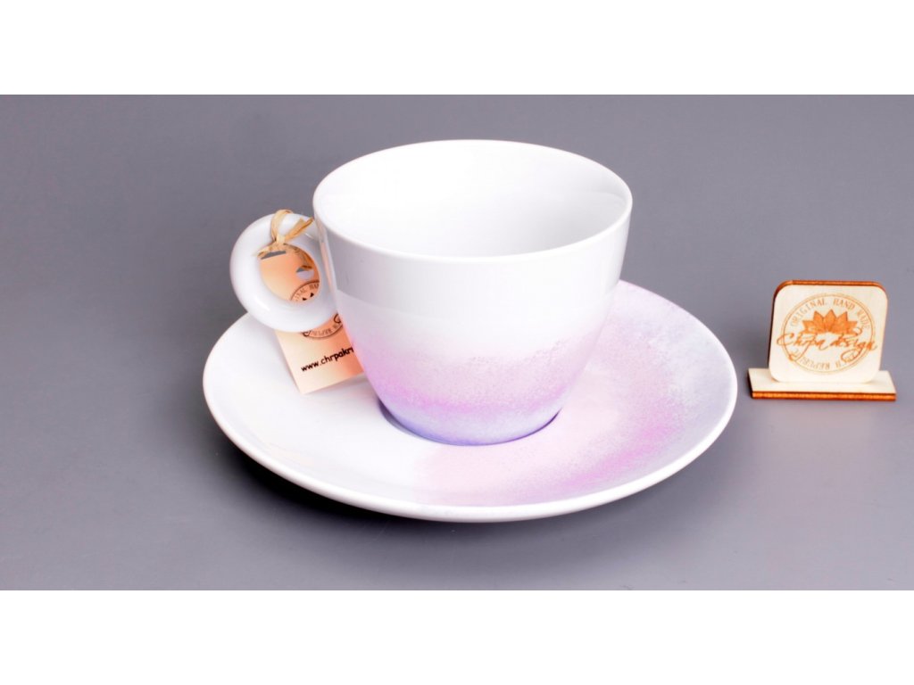 Šálek s podšálkem je vyroben z porcelánu a ručně malovaný. Dá se běžně používat a umývat běžným způsobem. Nedoporučujeme umývat v myčce na nádobí. Obsah 0,15 L.