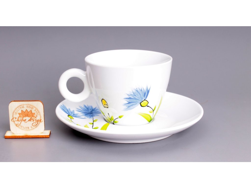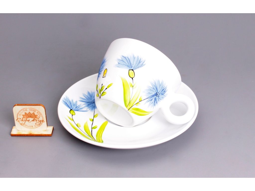 Šálek s podšálkem je vyroben z porcelánu a ručně malovaný. Dá se běžně používat a umývat běžným způsobem. Nedoporučujeme umývat v myčce na nádobí. Obsah 0,15 L.