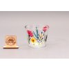Skleněný, ručně malovaný svícen s originálním vzorem na čajovou svíčku. Velikost 6 x 7,5 cm.