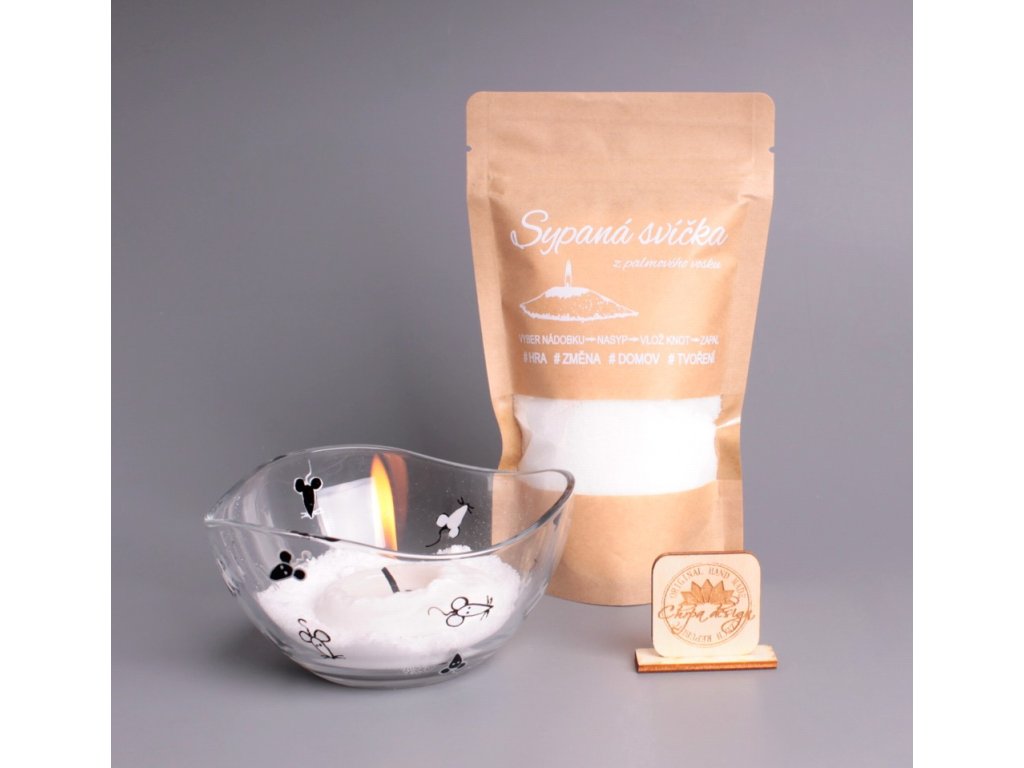 FOTA S MISKOU/SKLENIČKOU JSOU POUZE ILUSTRATIVNÍ, kupujete pouze sáček se sypaným voskem!